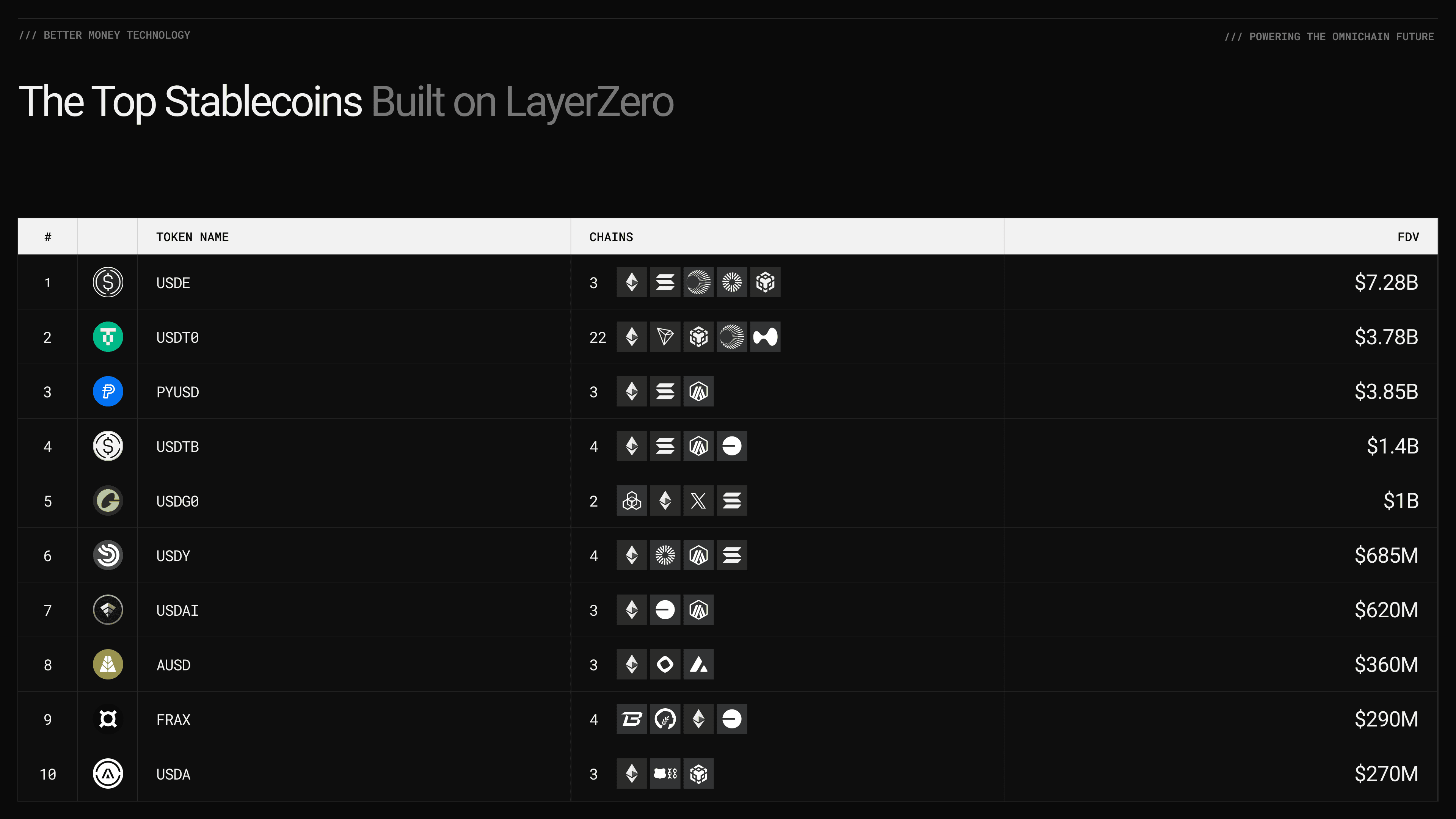 This is not just important for DeFi native-assets. Today, money and traditional assets can move onchain further, faster, and without limits in a way that is simply not possible in legacy systems. For instance, Ondo Finance has tokenized 100+ stocks with the OFT Standard and 61% of stablecoins move with LayerZero.