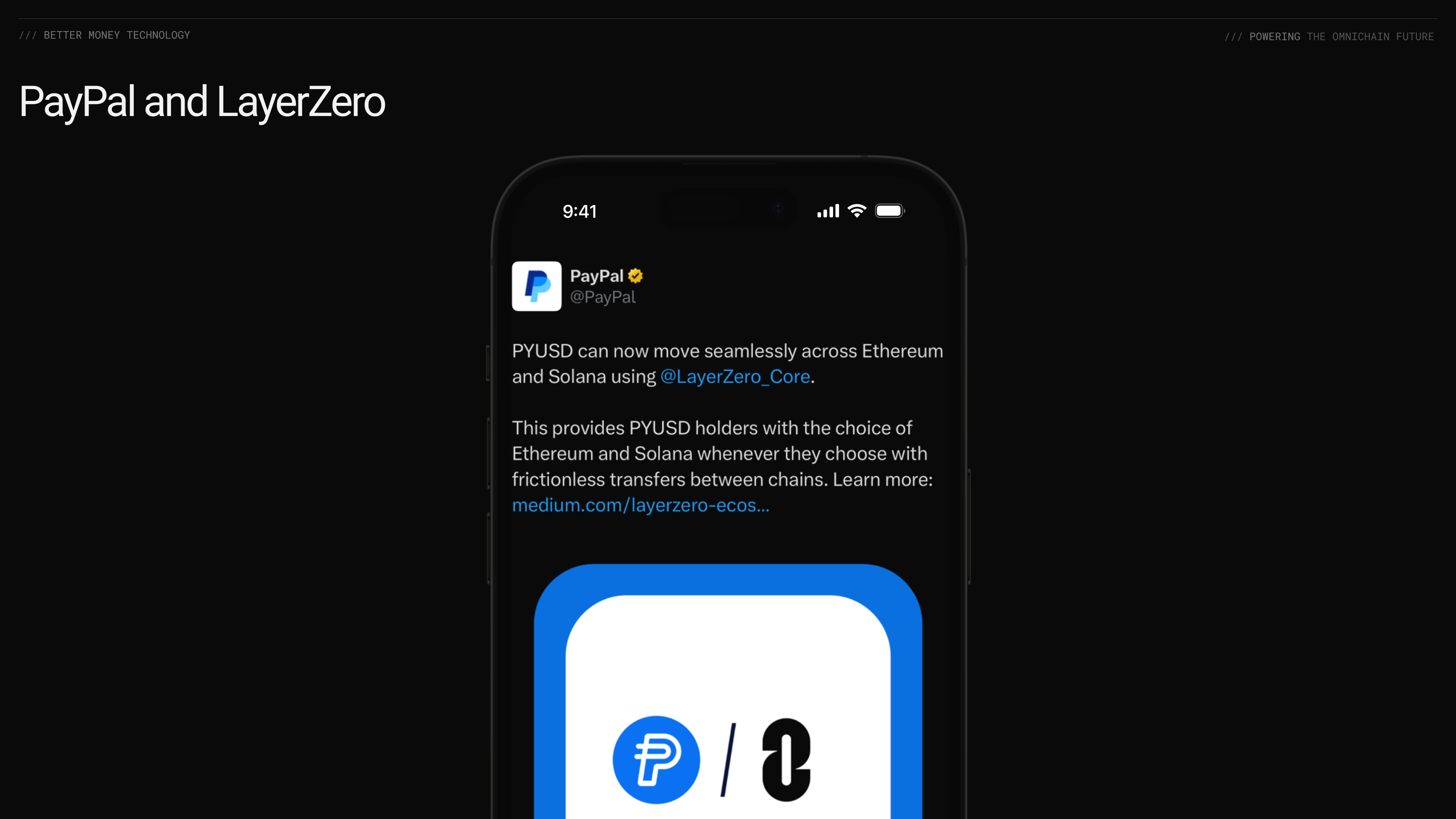 - PayPal USD connected its stablecoin between Ethereum, Arbitrum, and Solana via LayerZero, enabling PYUSD to move between chains for just the cost of gas. By utilizing LayerZero, users who self-custody their PYUSD tokens can seamlessly transfer assets between blockchains -- without needing to rely on centralized platforms like Venmo or PayPal. It has also brought PYUSD0 to nine other blockchains with LayerZero.